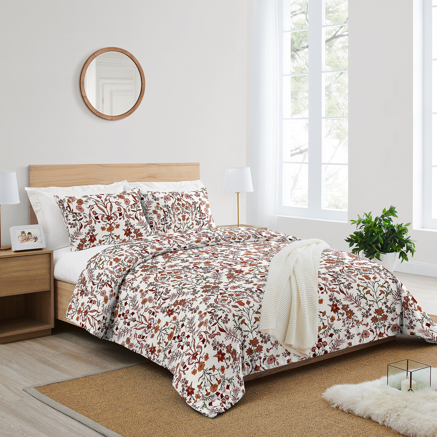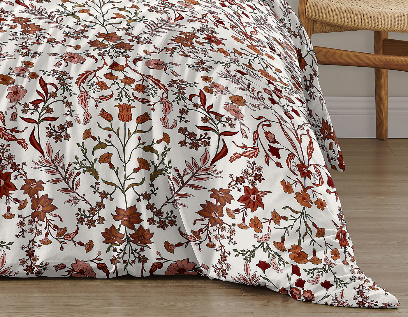 Set and Dimensions: Set and Dimensions: 1 Full / Queen Duvet Cover (90 in x 90in) and 2 Standard Shams (20in x 26in). (Does not include comforter insert)Design: Bohemian wildflower garden Ivory and Orange floral pattern creates a farmhouse and vintage look. This cottagecore design will compliment any bedroom in your home.Materials and Care: Brushed Microfiber – Extremely soft and wrinkle resistant. Machine washable. Tumble dry low.Features: Hidden zipper closures on both duvet cover and sham make inserting and removing your comforter and pillow quick and easy.Matching Accessories: Sweet Jojo Designs offers coordinating bedding sets, decorative throw pillows, shower curtains, window panels, bed skirts, body pillows and more. Please check our store for these accessories.Item# WildFlower-IV-OR-Duvet-Q-3